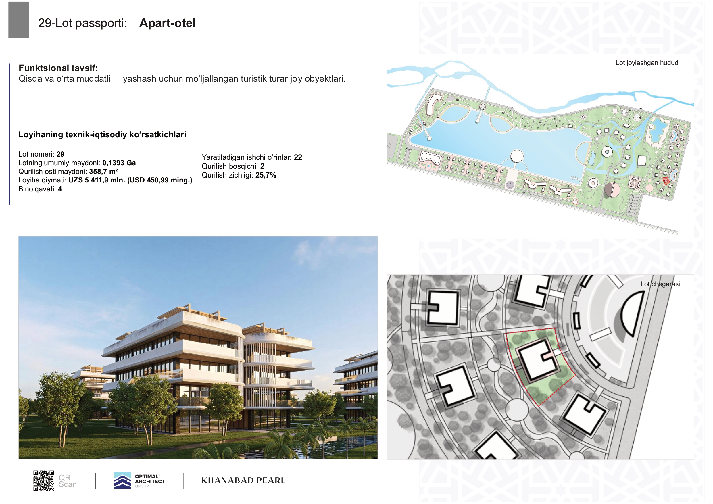 Хонобод шаҳрида аҳоли ва сайёҳлар учун барча қулайликларга эга 97 гектар ер майдонида мастер режага мувофиқ дам олиш маскани ташкил этилмоқда. Унда 25 гектарлик сунъий кўл, савдо кўнгилочар марказлари, «Аквапарк»лар, 8 та (ҳар бири 100 ўринли) апарт-отеллар, 1 та (200 ўринли) меҳмонхона ва спорт, аҳоли дам олиш масканлари, яшил ҳудудлар ҳамда бошқа туризм объектлари барпо этилади.